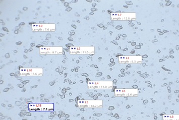 Microencapsulation: Microencapsulation refers to packaging an active ingredient inside a capsule ranging in size from one micron to several millimeters. The capsule protects the active ingredient from its surrounding environment until an appropriate time. Then, the material escapes through the capsule wall by various means, including rupture, dissolution, melting, or diffusion 11. Clove extract was microencapsulated in β-cyclodextrin. The microencapsulated powder was light yellow in color, crystalline in texture, and it had an aromatic odor of clove. The particle size of the powder was also determined using a photographic microscope, Fig. 2.